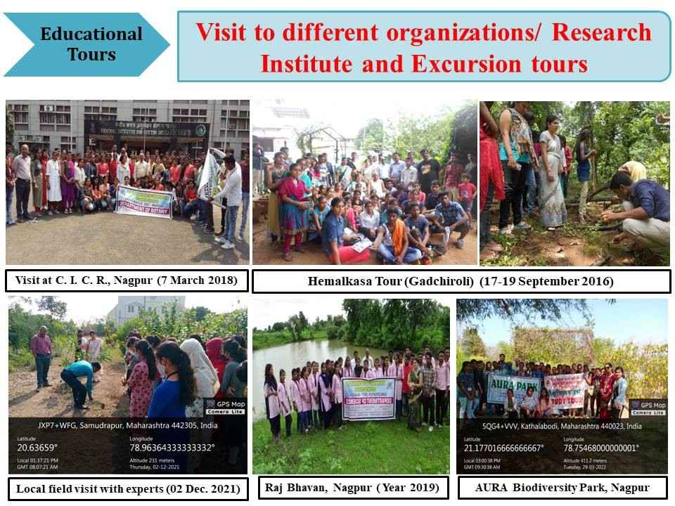 The department of Botany was established in July 2006. We have three permanent faculties Dr. Nayana S. Shirbhate, Dr.V. G. Manwatkar and Dr. S. D. Yeotkar, two lab attendants Shri. S. B. Bodkhe and Shri B. L. Kadu. In our department 50 instruments costing Rs. 642238 up to 31/4/2021. Our lab is fulfilled with chemicals, glassware, materials, permanent slides, charts etc. of cost Rs. 1, 52,945. In college library has 403 books of Botany costing Rs.2, 08064 up to 31/04/2021 and also form a sectional library of Botany. Sectional library has total 82 different books and journals. These books are handed over to students for regular use. The department has organized field study tour for the all B.Sc. students, for systematic introduction of plants & biodiversity, collection of material, vegetation study and other studies. Student are motivated and benefited by the field visit to improve the knowledge about taxonomy, medicinal plant & flora and fauna of local area. Modern teaching methods practiced and use of ICT in teaching – learning i.e. R. B. P. T., LCD Projector, Computer, Scanner, Internet facilities, etc available in department.